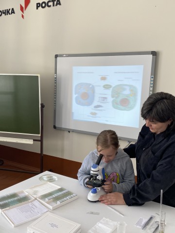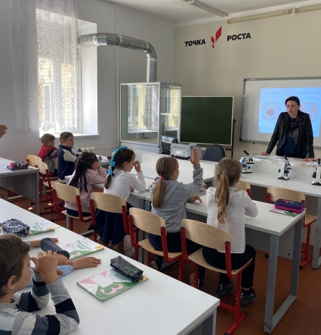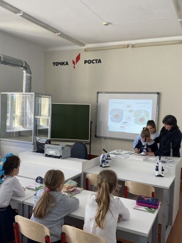 В апреле на базе Центра «Точка роста» учителем биологии Рекуновой М.П., совместно с учителем начальных классов Полубедовой Е.В., был проведен мастер – класс: «Использование цифрового микроскопа на уроках окружающего мира в начальной школе» для обучающихся 3 класса.