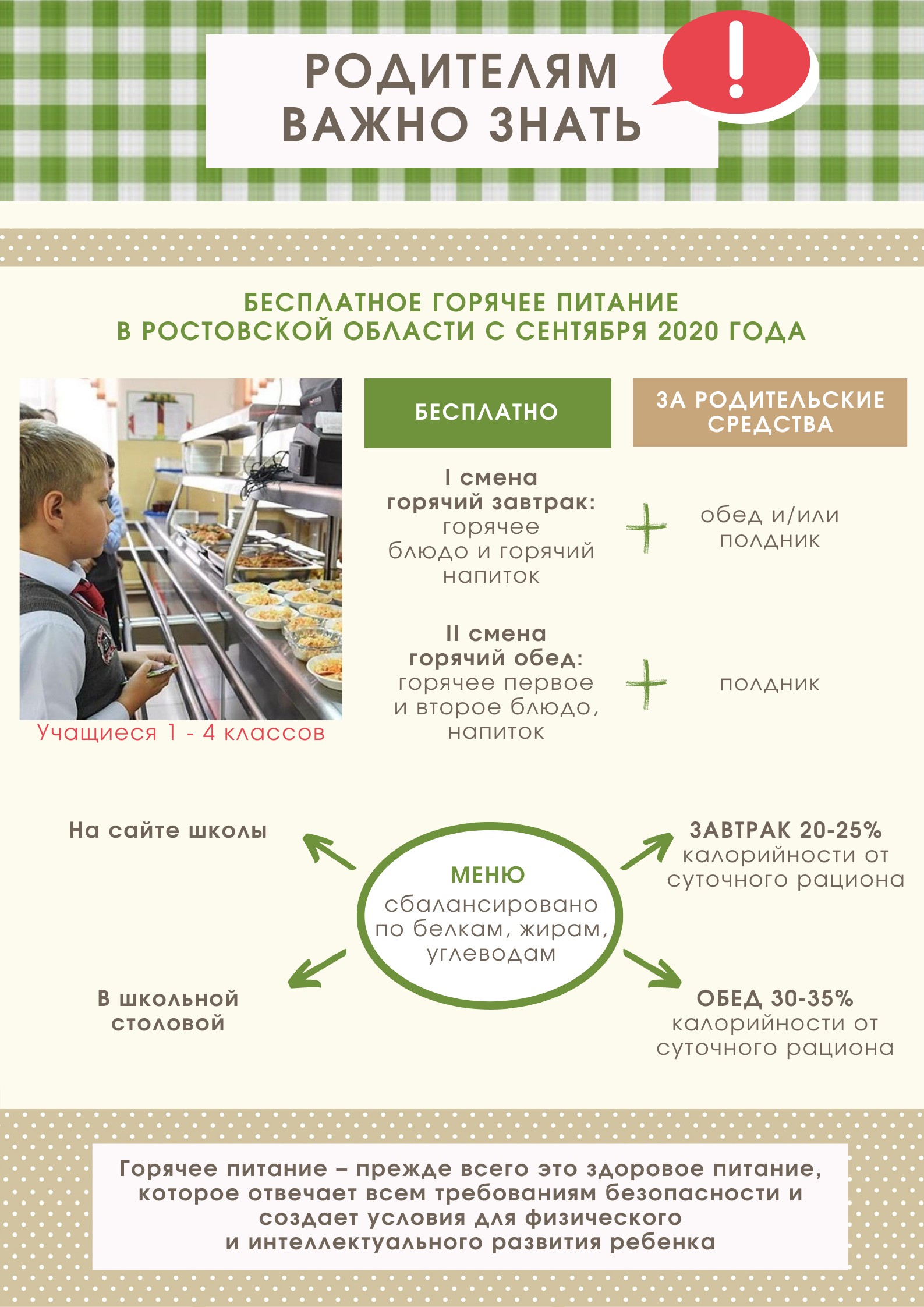 1. БЕСПЛАТНОЕ ГОРЯЧЕЕ ПИТАНИЕ ДЛЯ 1 - 4 КЛАССОВ
